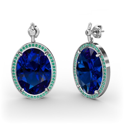 Lab safir ve yeşil kuvars 14 ayar beyaz altın küpe