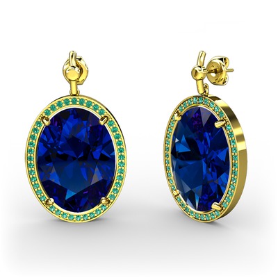 Lab safir ve yeşil kuvars 8 ayar altın küpe