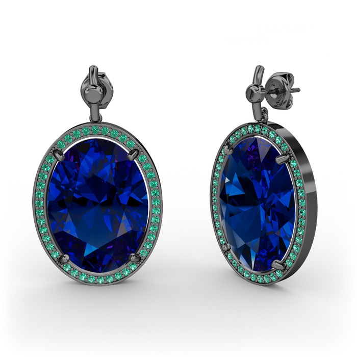 Lab safir ve yeşil kuvars 925 ayar siyah rodyum kaplama gümüş küpe