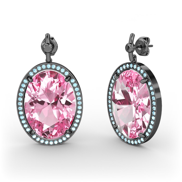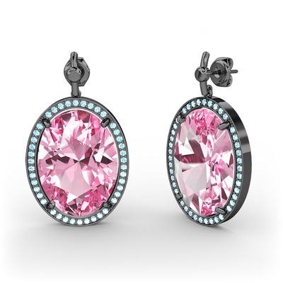 Pembe kuvars ve akuamarin 925 ayar siyah rodyum kaplama gümüş küpe