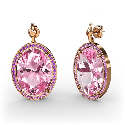 Pembe kuvars ve ametist 14 ayar rose altın küpe