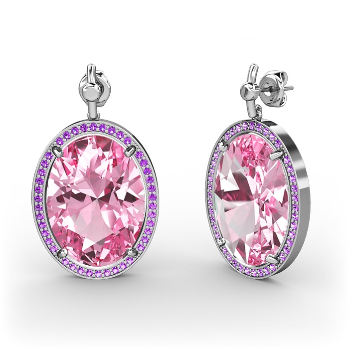 Pembe kuvars ve ametist 8 ayar beyaz altın küpe