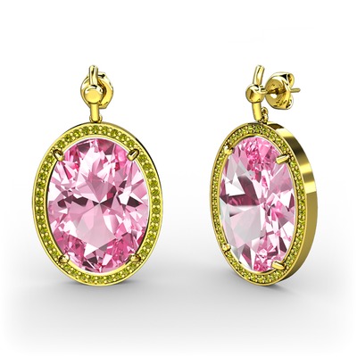 Pembe kuvars ve peridot 14 ayar altın küpe