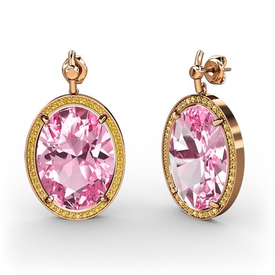 Pembe kuvars ve sitrin 14 ayar rose altın küpe