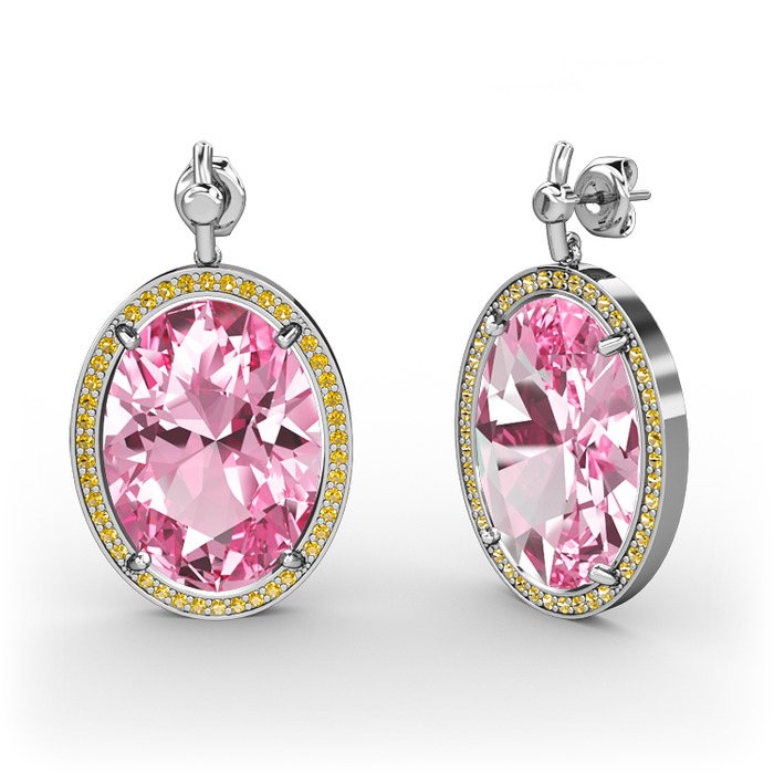 Pembe kuvars ve sitrin 8 ayar beyaz altın küpe