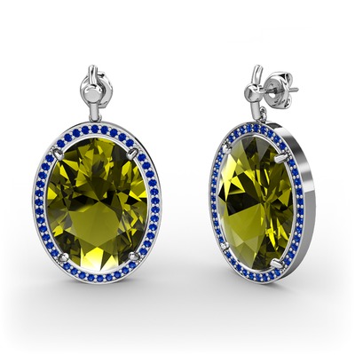 Peridot ve lab safir 8 ayar beyaz altın küpe