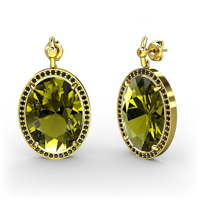 Peridot ve siyah zirkon 18 ayar altın küpe