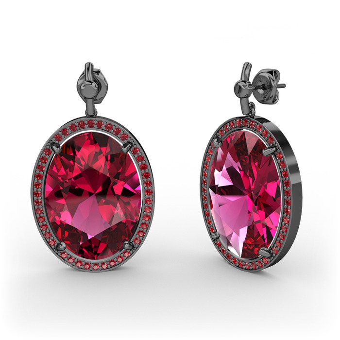 Rodolit garnet ve garnet 925 ayar siyah rodyum kaplama gümüş küpe