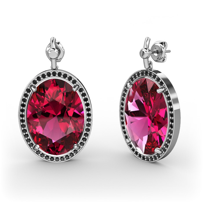Rodolit garnet ve siyah zirkon 8 ayar beyaz altın küpe