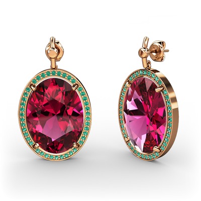 Rodolit garnet ve yeşil kuvars 925 ayar rose altın kaplama gümüş küpe