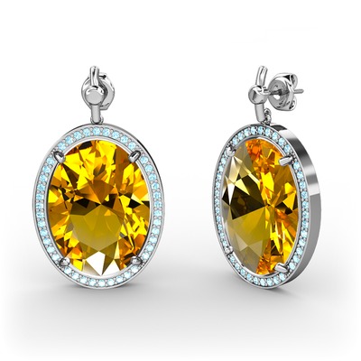 Sitrin ve akuamarin 18 ayar beyaz altın küpe