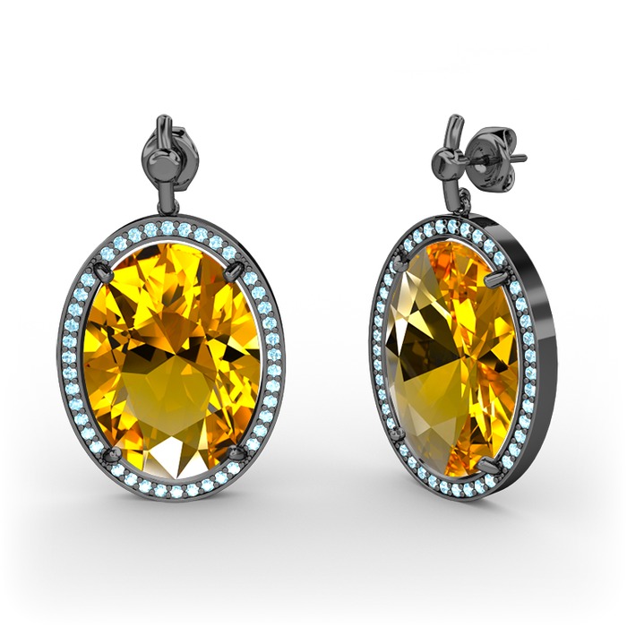 Sitrin ve akuamarin 925 ayar siyah rodyum kaplama gümüş küpe