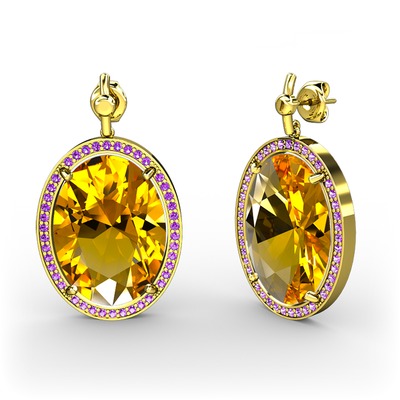 Sitrin ve ametist 925 ayar altın kaplama gümüş küpe