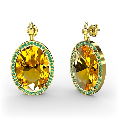 Sitrin ve yeşil kuvars 14 ayar altın küpe