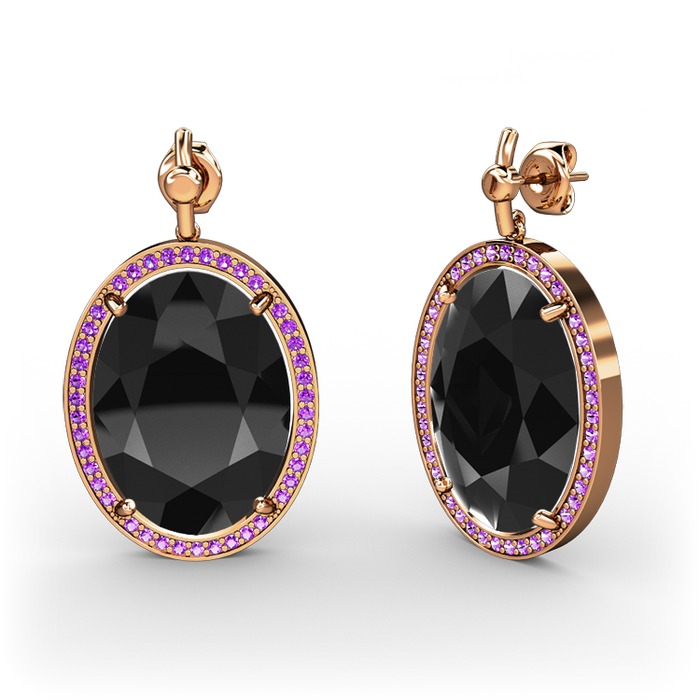 Siyah zirkon ve ametist 925 ayar rose altın kaplama gümüş küpe