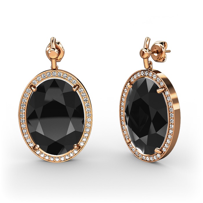Siyah zirkon ve beyaz zirkon 925 ayar rose altın kaplama gümüş küpe