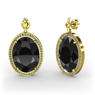 Siyah zirkon ve dumanlı kuvars 18 ayar altın küpe