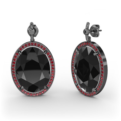 Siyah zirkon ve garnet 925 ayar siyah rodyum kaplama gümüş küpe