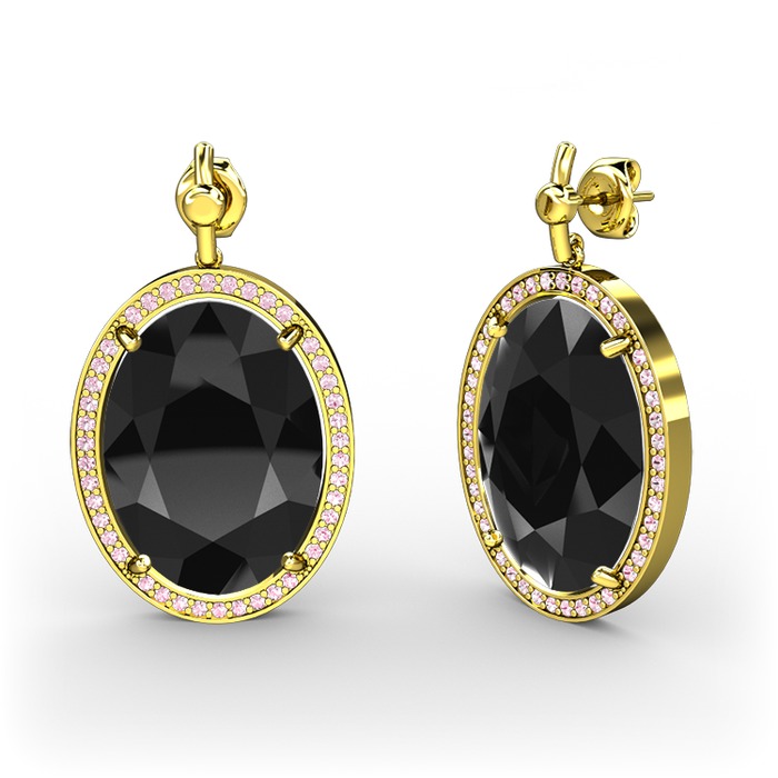 Siyah zirkon ve pembe kuvars 8 ayar altın küpe