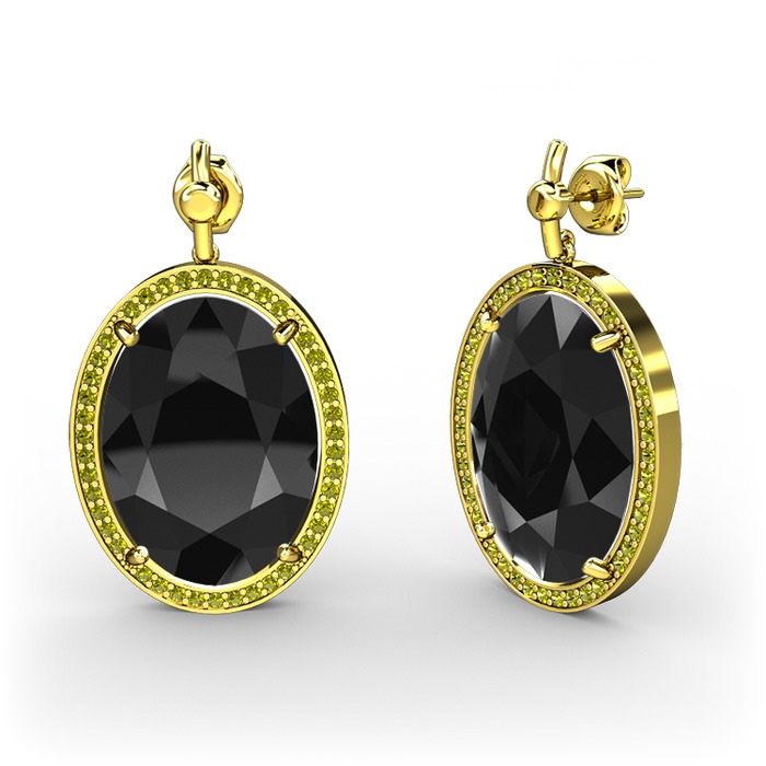 Siyah zirkon ve peridot 8 ayar altın küpe