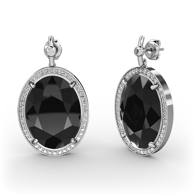 Siyah zirkon ve pırlanta 8 ayar beyaz altın küpe (1.26 karat)