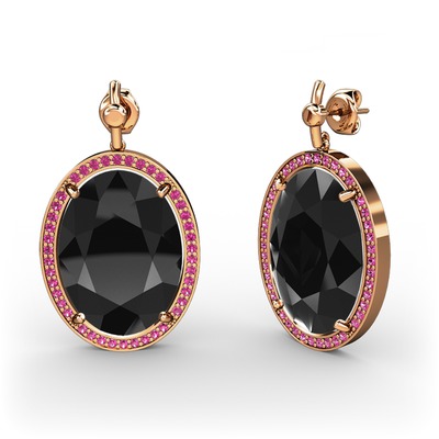 Siyah zirkon ve rodolit garnet 8 ayar rose altın küpe