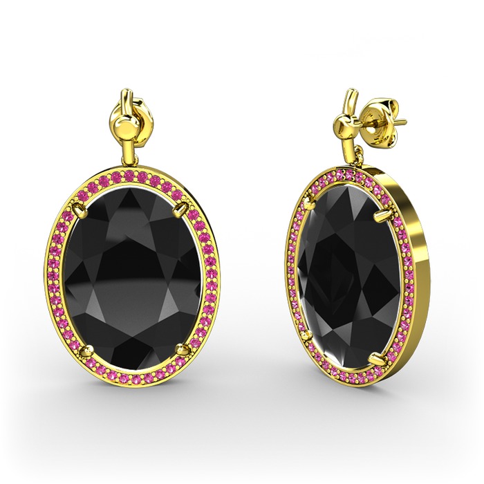 Siyah zirkon ve rodolit garnet 925 ayar altın kaplama gümüş küpe