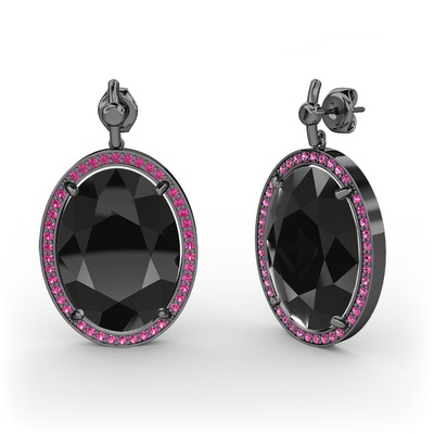 Siyah zirkon ve rodolit garnet 925 ayar siyah rodyum kaplama gümüş küpe