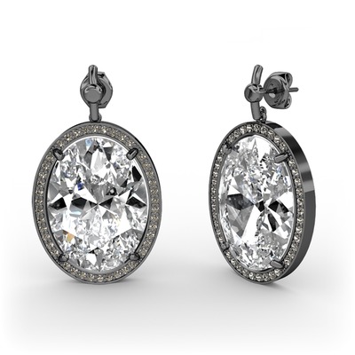 Swarovski ve dumanlı kuvars 925 ayar siyah rodyum kaplama gümüş küpe