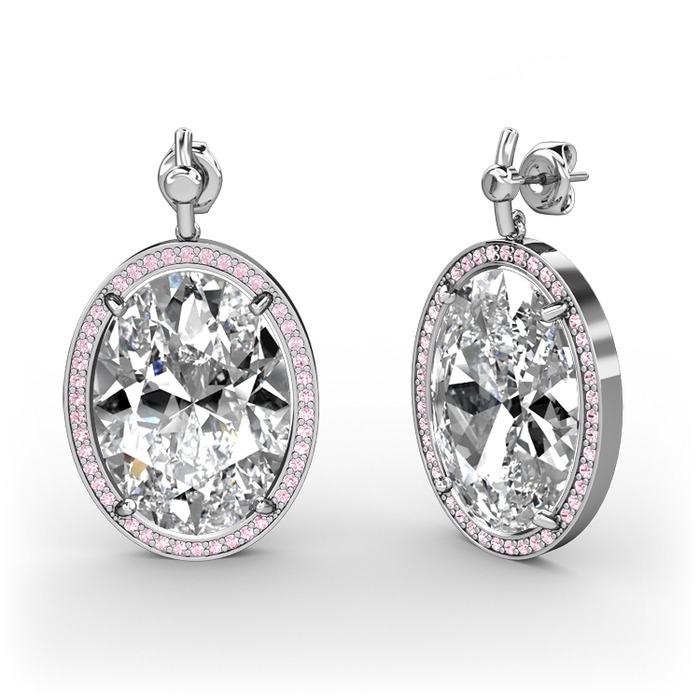 Swarovski ve pembe kuvars 14 ayar beyaz altın küpe
