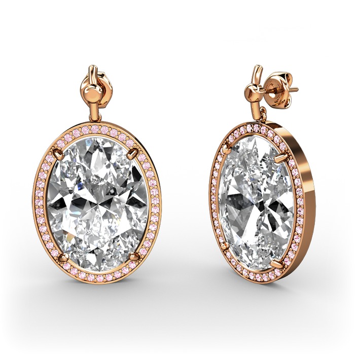 Swarovski ve pembe kuvars 8 ayar rose altın küpe