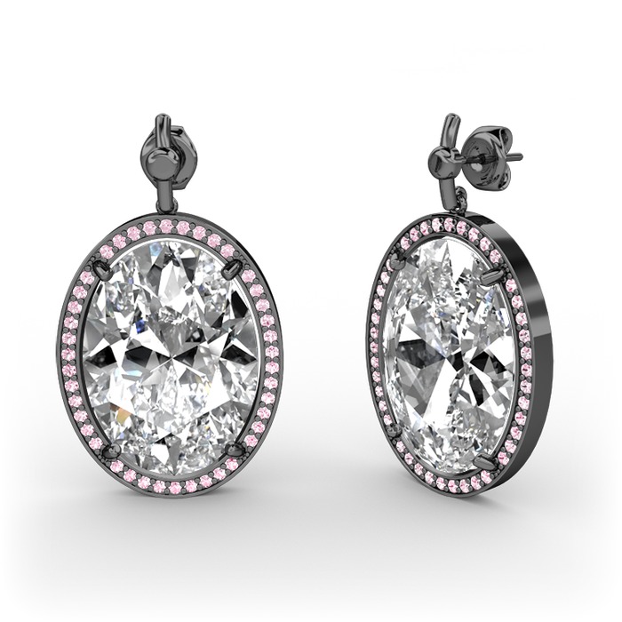 Swarovski ve pembe kuvars 925 ayar siyah rodyum kaplama gümüş küpe