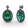 Yeşil kuvars ve lab safir 925 ayar siyah rodyum kaplama gümüş küpe