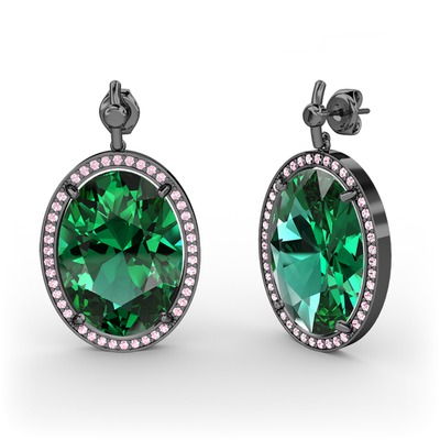 Yeşil kuvars ve pembe kuvars 925 ayar siyah rodyum kaplama gümüş küpe