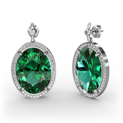 Yeşil kuvars ve pırlanta 14 ayar beyaz altın küpe (1.26 karat)