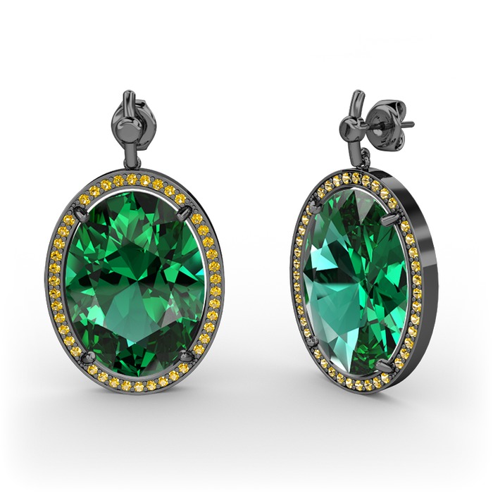Yeşil kuvars ve sitrin 925 ayar siyah rodyum kaplama gümüş küpe