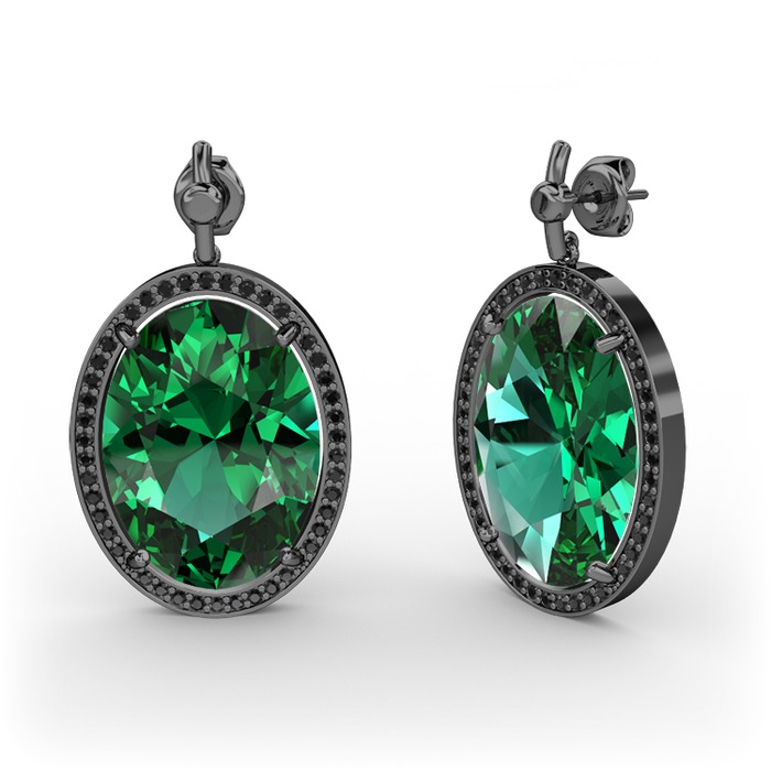 Yeşil kuvars ve siyah zirkon 925 ayar siyah rodyum kaplama gümüş küpe