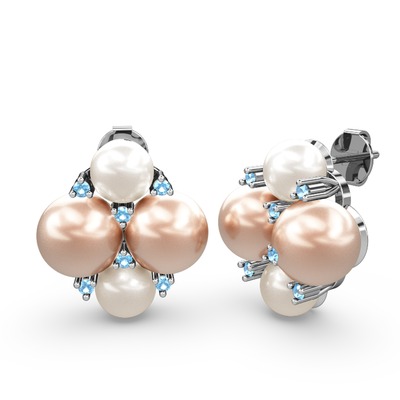Inci, pembe inci ve akuamarin 8 ayar beyaz altın küpe