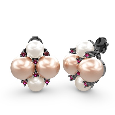 Inci, pembe inci ve rodolit garnet 925 ayar siyah rodyum kaplama gümüş küpe