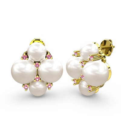 Inci ve pembe kuvars 925 ayar altın kaplama gümüş küpe