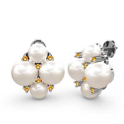 Inci ve sitrin 18 ayar beyaz altın küpe