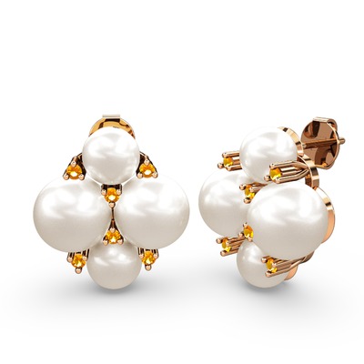 Inci ve sitrin 925 ayar rose altın kaplama gümüş küpe