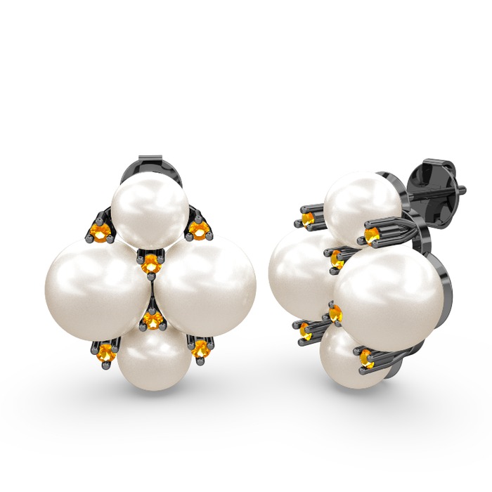 Inci ve sitrin 925 ayar siyah rodyum kaplama gümüş küpe
