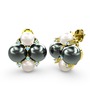 Inci, siyah inci ve akuamarin 8 ayar altın küpe