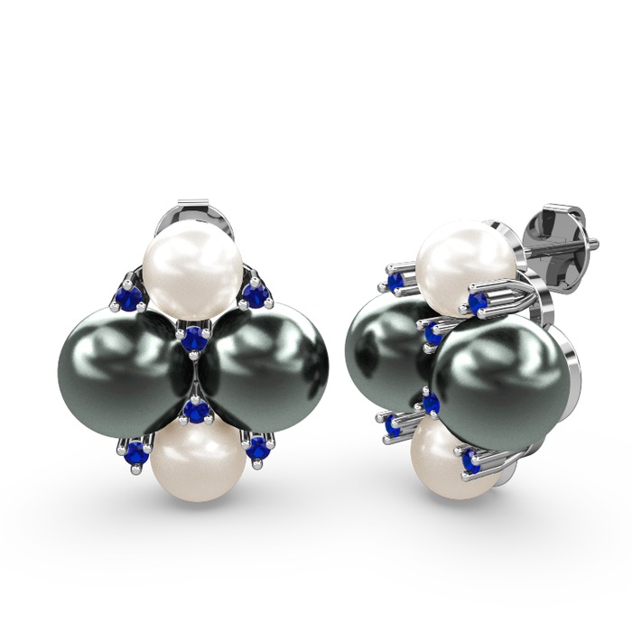 Inci, siyah inci ve lab safir 8 ayar beyaz altın küpe