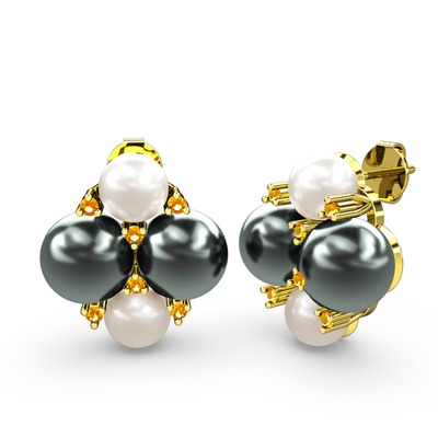 Inci, siyah inci ve sitrin 8 ayar altın küpe