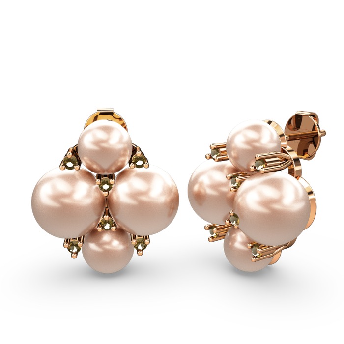 Pembe inci ve dumanlı kuvars 8 ayar rose altın küpe