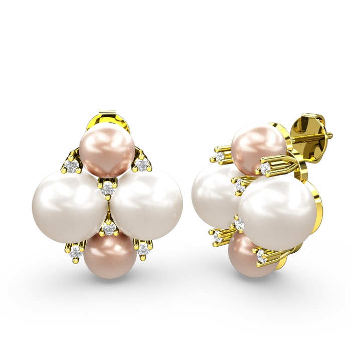 Pembe inci, inci ve beyaz zirkon 925 ayar altın kaplama gümüş küpe