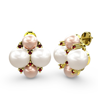 Pembe inci, inci ve garnet 14 ayar altın küpe