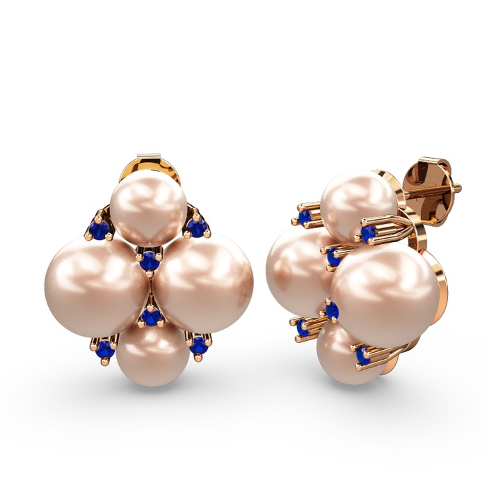 Pembe inci ve lab safir 8 ayar rose altın küpe